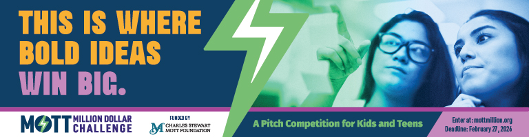 That’s why the Mott Million Dollar Challenge is going all-in on innovation and backing the next generation of genius. Supported by funding from the Charles Stewart Mott Foundation, the Mott Million Dollar Challenge is powered by the Network for Teaching Entrepreneurship (NFTE) in collaboration with VentureLab, Young Entrepreneur Institute (YEI), the Afterschool Alliance and Collaborative Communications.